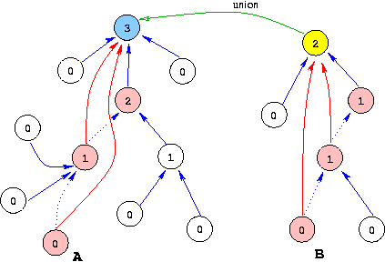 - Implanter la gestion des ensembles disjoints par liste chainée et union pondérée.
